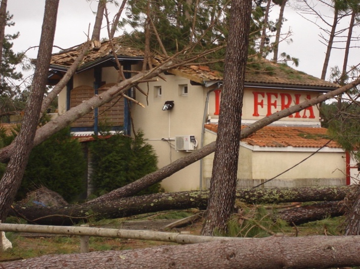 Vers 4 h du matin, les premières rafales commencèrent à souffler. À 7 h du matin, la tempête est à son comble avec des rafales à plus de 170 km. Vers 8 h du matin, Stéphan décida de faire une première reconnaissance au Restaurant. Deux arbres étaient déjà couchés sur le bâtiment. Il y avant des dizaines d’arbres à terre, une vraie catastrophe. Le cadre de « LA FÉRIA » allait changer à tout jamais.